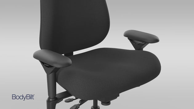 Bodybilt J3504 Big & Tall Chair features a reinforced seat structure that is 22% larger than average seats, accommodating workers above the 80th percentile - this model supports up to 500lb / 36st / 226kg.