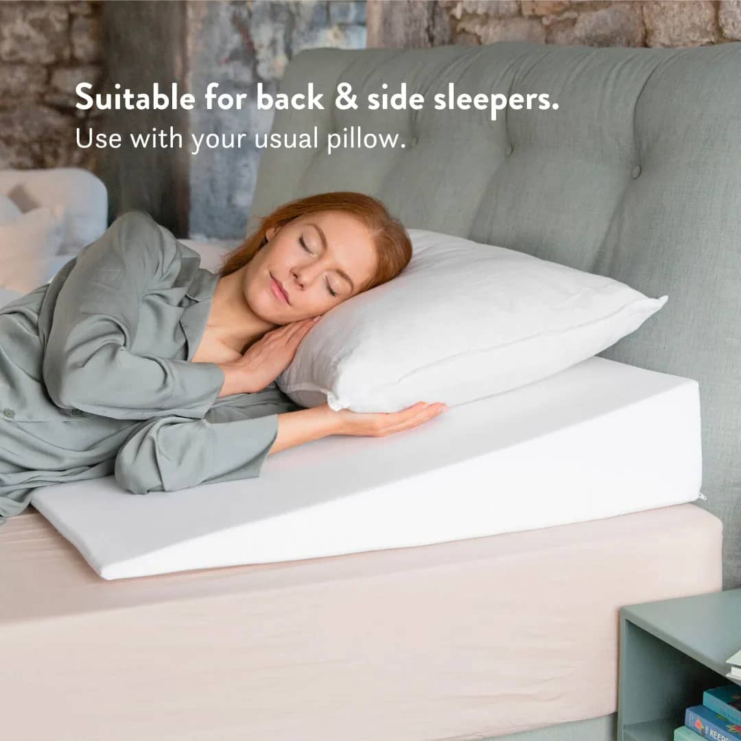 At exactly the NHS-recommended elevation height (10–20cm), this wedge is engineered to be effective without being uncomfortable. Its gradual slope means you can sleep on your side; left-side sleeping is preferred for reflux, without feeling propped up or tilted.
