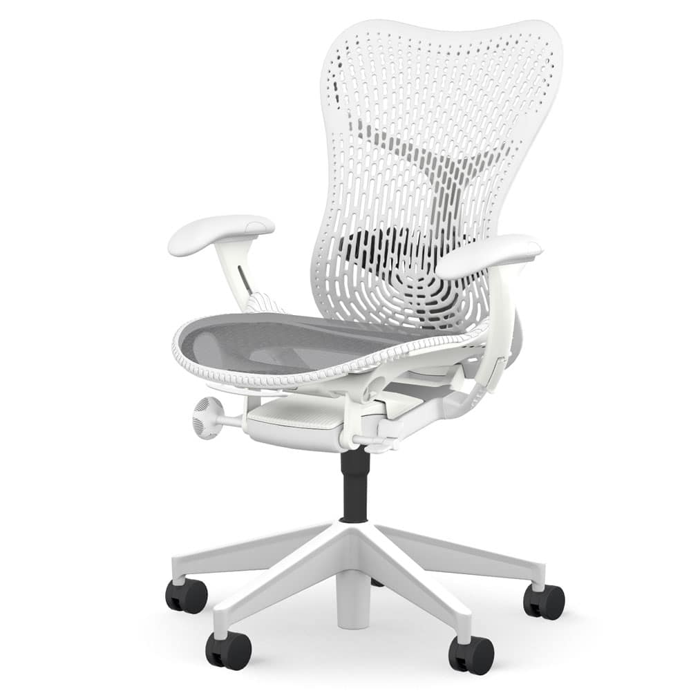 Elevate your workspace with the Herman Miller Mirra 2 Triflex Chair – Alpine, White Frame, Fog Base—where ergonomic innovation meets modern design. Order now and experience seating that moves with you.