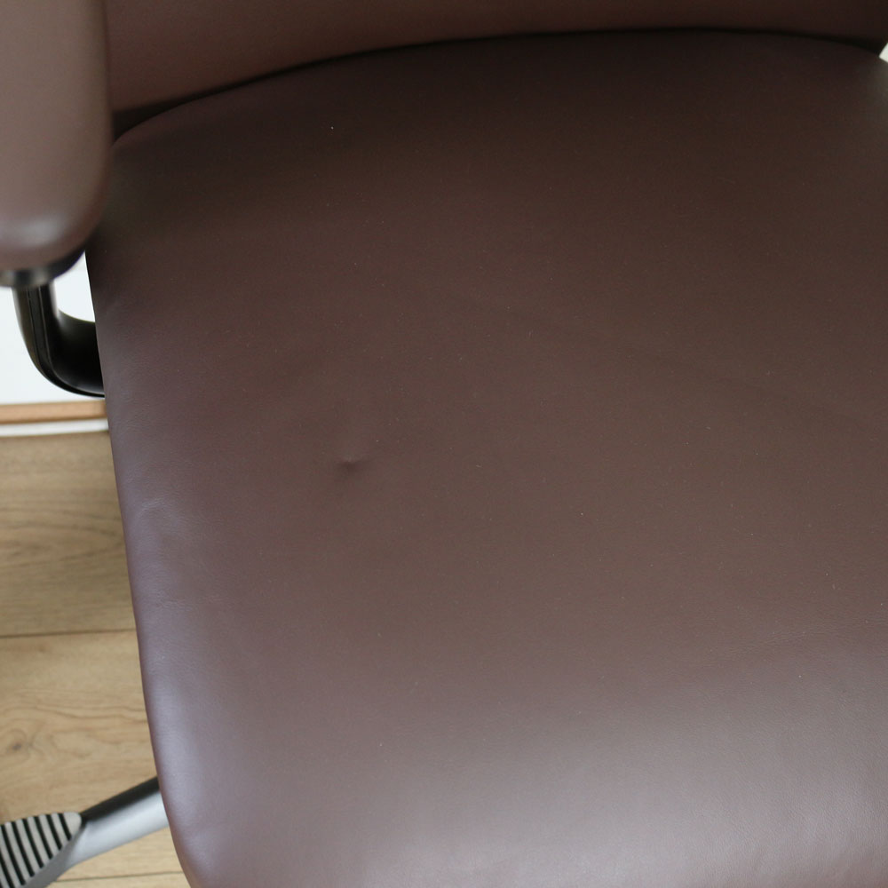 Please note that there is a dent in the leather of the seat and backrest. Please see the images. These do not affect the functionality of the chair.